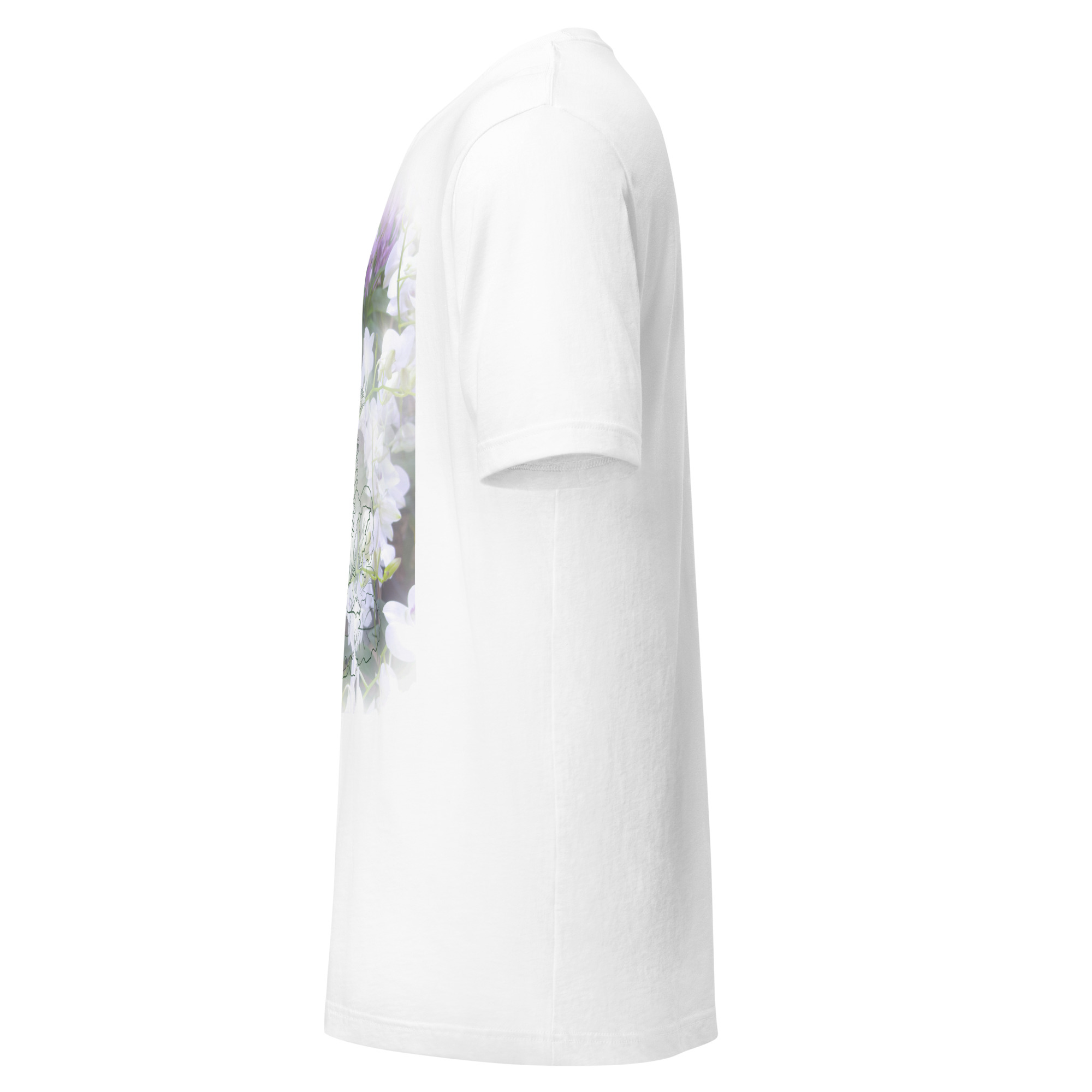 Coloque a ponta da fita métrica ao lado da gola na parte mais alta do ombro. Estique a fita até a bainha da parte inferior da camiseta.