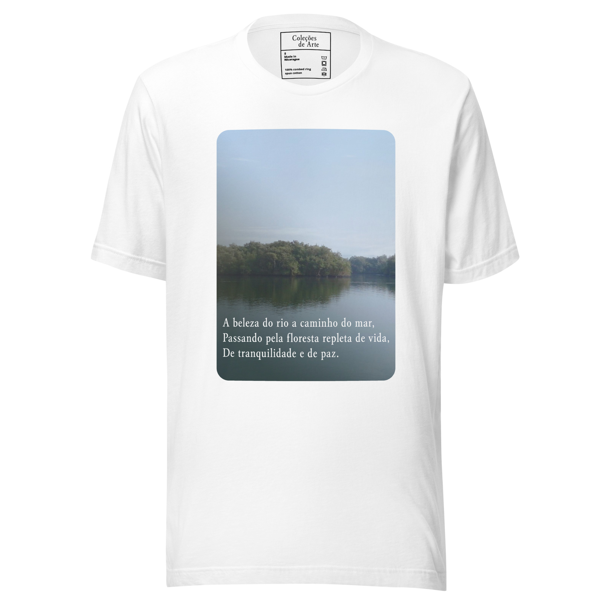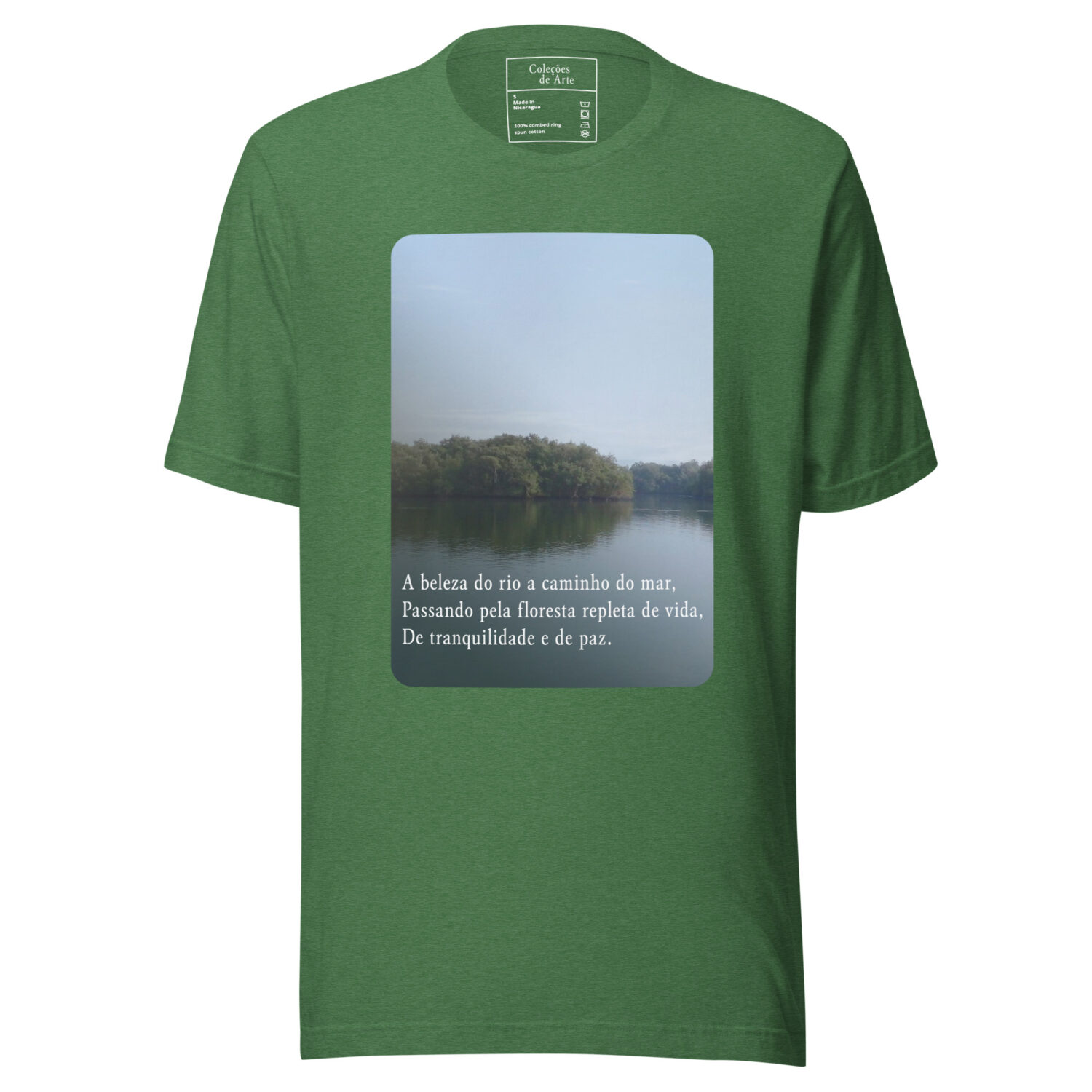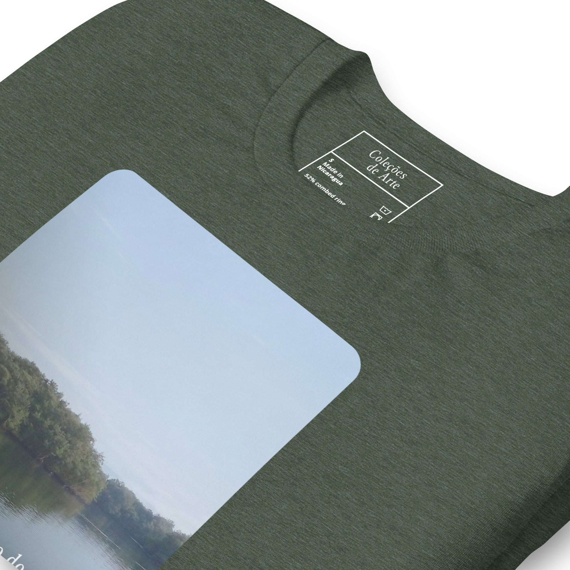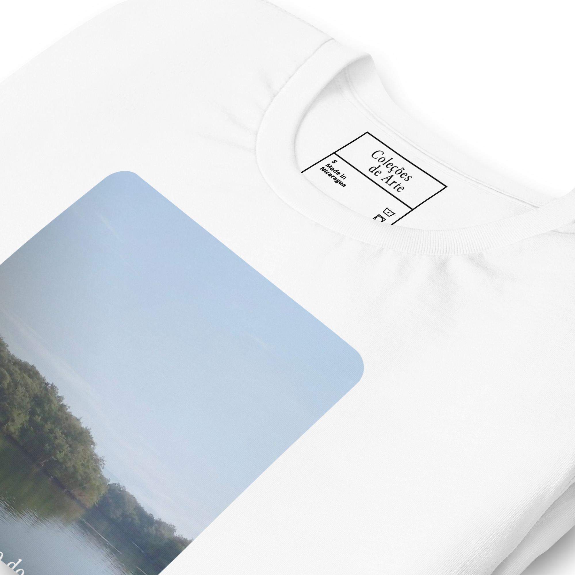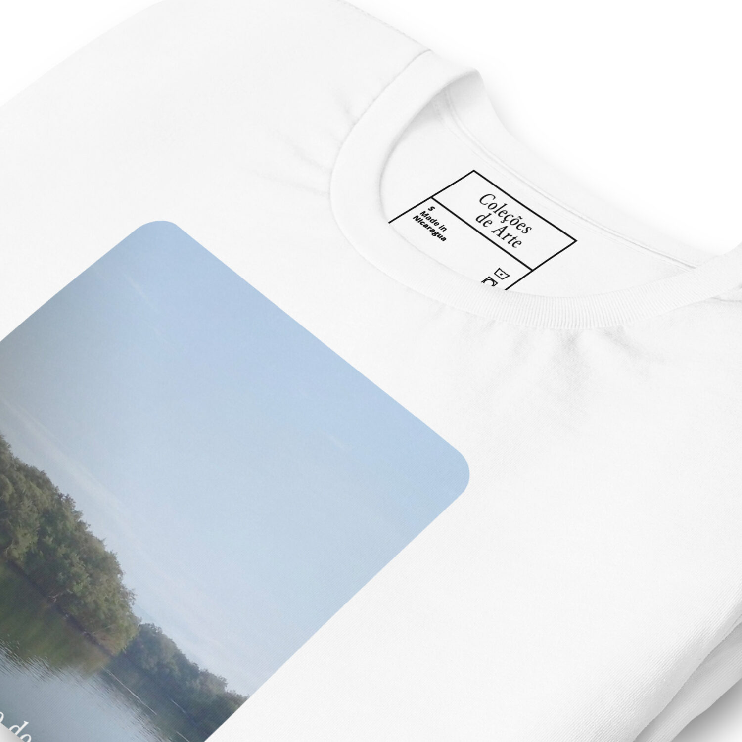 Coloque a ponta da fita métrica ao lado da gola na parte mais alta do ombro. Estique a fita até a bainha da parte inferior da camiseta.